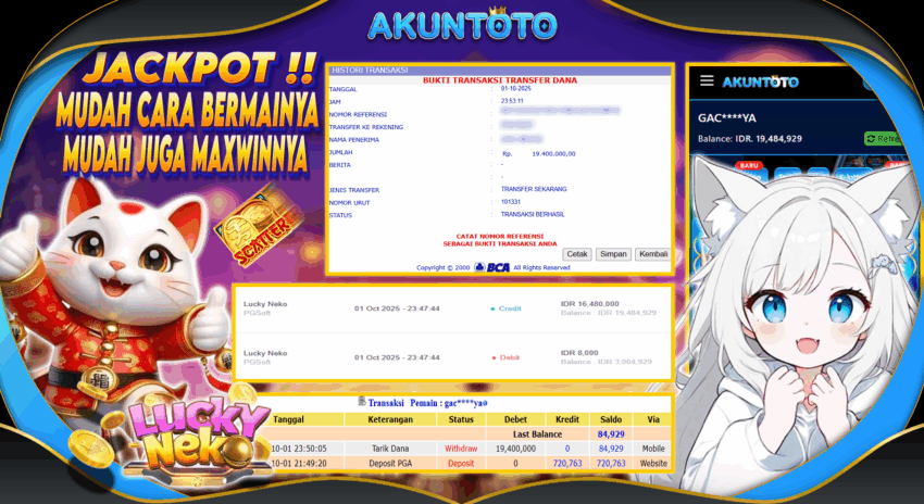 AKUNTOTO JACKPOT SLOT LUCKY NEKO Rp 19.400.000 KAMIS 02 OKTOBER 2025