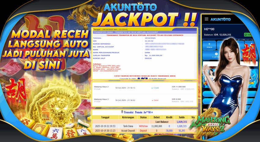 AKUNTOTO JACKPOT SLOT MAHJONG WAYS 2 Rp11.000.000 SENIN 20 OKTOBER 2025