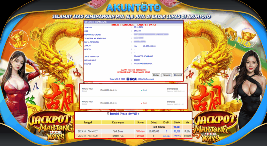AKUNTOTO JACKPOT SLOT MAHJONG WAYS Rp16.800.00 JUMAT 17 OKTOBER 2025