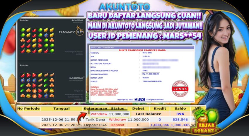 AKUNTOTO JACKPOT SLOT RUJAK BONANZA Rp11.000.000 MINGGU 07 DESEMBER 2025