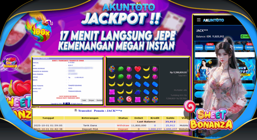 AKUNTOTO JACKPOT SLOT SWEET BONANZA Rp 11.800.000 RABU 01 OKTOBER 2025