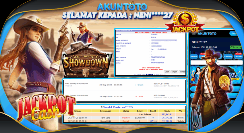 AKUNTOTO JACKPOT SLOT WILD BOUNTY SHOWDOWN Rp 17.000.000 SENIN 22 SEPTEMBER 2025